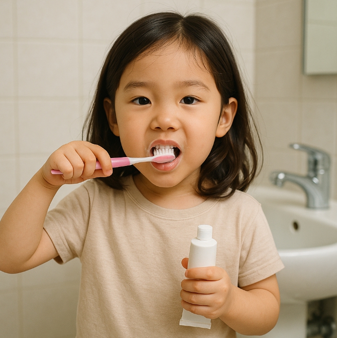 그리고 치약은 무불소 아니면 어린이용 불소 치약으로 소량만 사용하는 게 좋아요~